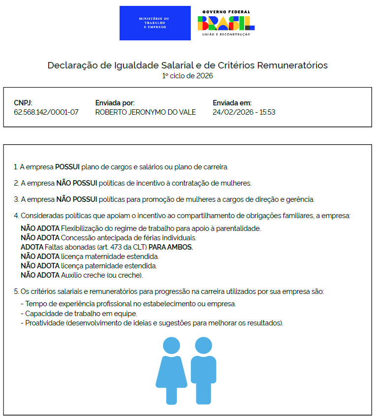 Declaração de Igualdade Salarial - Estrela Azul 2026