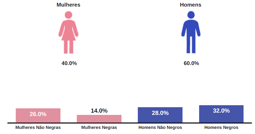 O salário contratual mediano das mulheres equivale a 100.0% do recebido pelos homens.